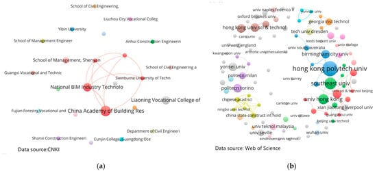 (a) International Collaborative Network of Institutions (CNKI). (b) International Collaborative Network of Institutions (Web of Science).