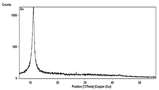 X-ray diffraction (XRD) was utilized to identify graphene oxide nanoparticles. X-ray diffraction pattern was performed using XPERT-PRO Powder Diffractometer system, with 2 theta (20°–80°), with Minimum step size 2 Theta: 0.001, and at wavelength (Kα) = 1.54614°. The samples were prepared at the Central Laboratory of South Valley University, Egypt.