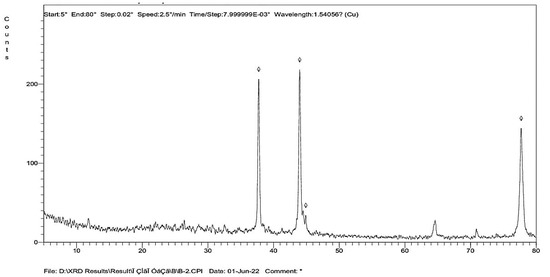 Graphene oxide nanoparticles were analyzed using X-ray diffraction (XRD). The XRD pattern was obtained using the XPERT-PRO Powder Diffractometer system, covering a 2-theta range from 10° to 50°. The XRD pattern of the graphene oxide nanoparticles is illustrated in Figure 8. Mud brick was analyzed using X-ray diffraction (XRD). The XRD pattern of the mud brick is illustrated in Figure 9 and Figure 10.