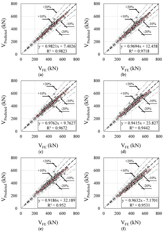 As can be seen from Table 3, the partial factors for the shear capacity of steel–concrete composite cellular beams with precast hollow-core slabs using different ML algorithms are very similar, and the values are around 1.255 to 1.265. It is worth noting that the high value for the partial factor is due to the high value for the COV of the concrete strength.