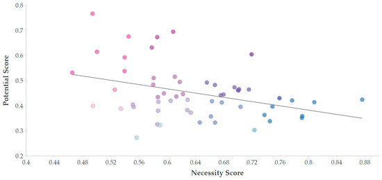 Regression analysis of potential and necessity scores and corresponding indicator values.