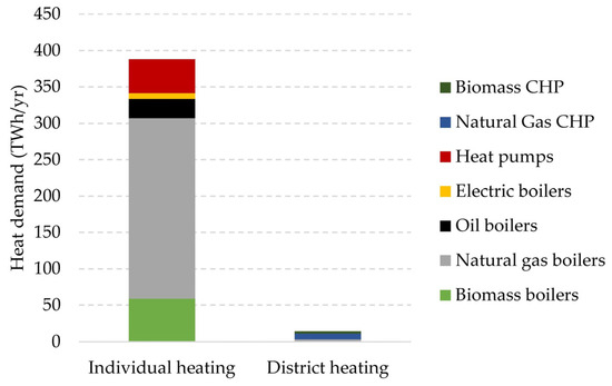 In Figure 2, the current individual and district heating demand in Italy is depicted according to the technology employed.