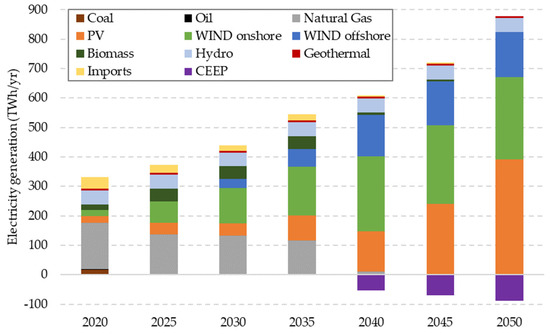 - Pastore, L.M.; Groppi, D.; Feijoo, F.; Lo Basso, G.; Astiaso Garcia, D.; de Santoli, L. Optimal decarbonisation pathways for the Italian energy system: Modelling a long-term energy transition to achieve zero emission by 2050. Appl. Energy 2024, 367, 123358. [Google Scholar] [CrossRef]