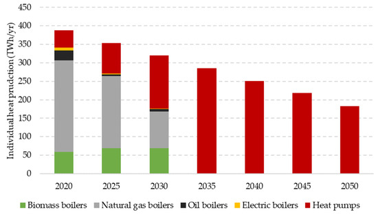 To the best of the authors’ knowledge, no studies in the literature have yet analysed this issue using a long-term optimisation model of the entire Italian energy system and evaluating the technical–economic effects of strategies on the building heating sector as well as on the entire Italian energy system.