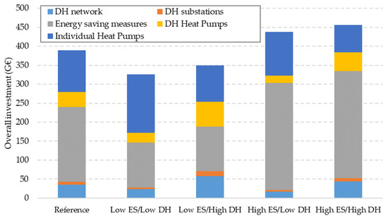 Overall investments in the heating systems and infrastructure in the different scenarios.