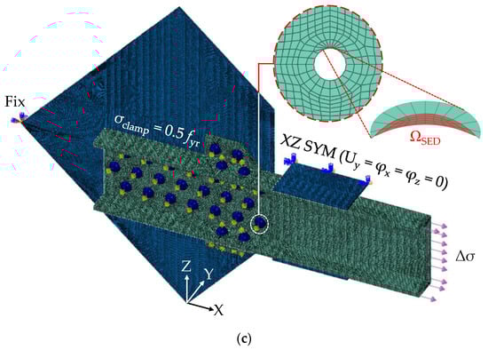 The derived values of Δσeq, i.e., superimposed with clamping stresses and equivalent mean stresses, were introduced into the local FEMs for ASED calculations. Further details are reported in the next section.