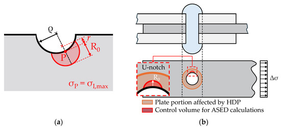 Applications of the SED method: (a) control volume for ASED calculations in U-notches; (b) extension to hot-driven riveted connections.