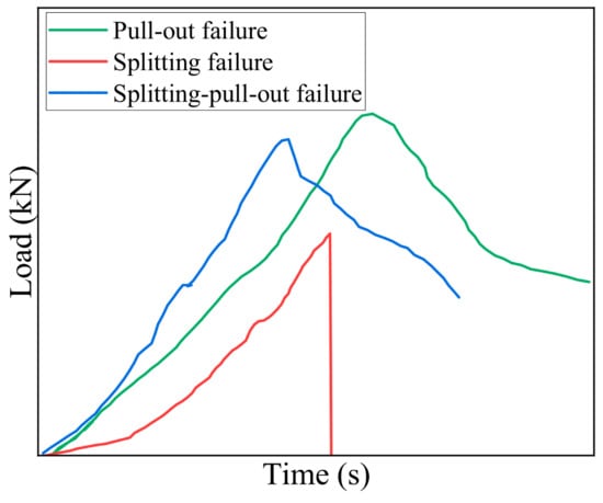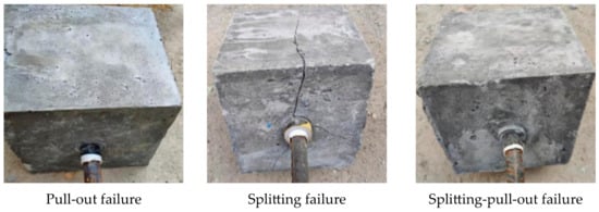 There are three different failure modes for specimens: pull-out failure, splitting failure, and splitting-pull-out failure.