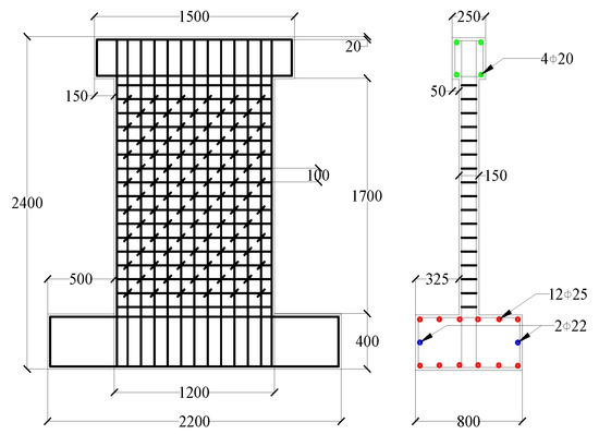 Figure 1. Dimensions and reinforcement arrangement of RC wall (unit: mm).