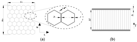 In Equation (1), tc and lc are the thickness and edge length of the honeycomb hole wall, respectively, and σc is the yield stress of the honeycomb matrix material.