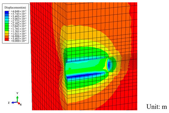 Based on the design and on-site support conditions, the excavation simulation of the right line was carried out. The calculation result of the right tunnel is shown in Figure 16.