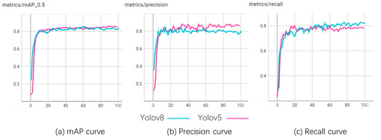 Training curves of mAP, precision, and recall Yolo-v5 and Yolov8.