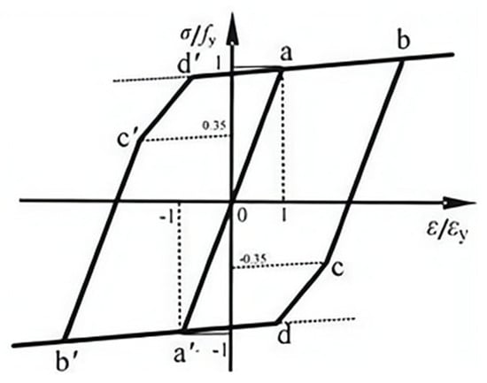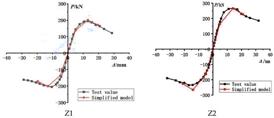 - Resilience model: Through experimentation, relational expressions for each stage of the dimensionless three-fold line model were calculated. Consequently, a restoring force model suitable for circular steel-tube concrete columns with an ultra-large diameter-to-thickness ratio was established. The calculated results demonstrated good agreement with experimental values. In addition, for straight-ribbed circular steel tube concrete columns with a large diameter-to-thickness ratio, the thin-wall effect of such components needs to be considered. Applying a reduction factor of 0.8 to the calculated results is recommended when using theoretical specifications.