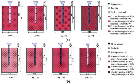 Profile of piles. (a) Impact of compaction degree; (b) Impact of moisture content.