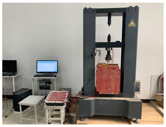 The loading equipment used in this experiment is the XS(082)F testing machine. The loading method adopts the constant rate of penetration loading method, with a loading rate of 1 mm/min (the minimum loading speed of the testing machine), loaded until the model pile load stabilizes or the pile top displacement reaches 15 mm, approximately 0.4 times the pile diameter. The loading system is shown in Figure 3.