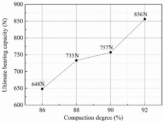 Relationship between compaction degree and ultimate bearing capacity of model piles.