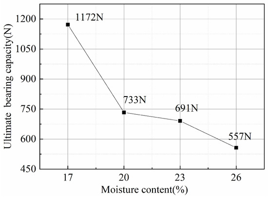 Relationship between moisture content and ultimate bearing capacity of model piles.