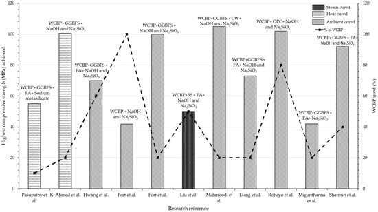- More research is required to develop simplified geopolymers based on WCBP precursors, akin to conventional cement. Investigating one-part geopolymer methods could lead to the development of simplified geopolymers that are easier to produce and use in various applications;