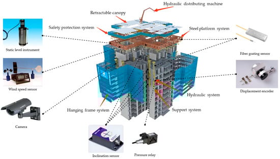 - Huang, Y.; Zhang, L.; Zuo, Z.; Pan, X.; Xia, J.; Fu, X. Control Technology of Integral Steel Platform Formwork Based on Real-Time Monitoring. Spat. Struct. 2021, 27, 83–89. [Google Scholar] [CrossRef]