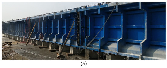 An experimental study was conducted to validate the theoretical analysis and provide guides for the design, fabrication, and evaluation of the pretensioned PC girders. In this study, the experimental girder was fabricated on a typical immovable pedestal (see Figure 1). The strands are anchored on the rigid frames at both ends, and the rigid frames are anchored to the foundation, as shown in Figure 1 and Figure 4.