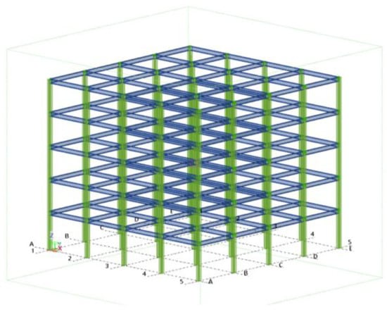 Figure 2. The structure consists of five floors, with the ground floor having a height of 3.9 m and the remaining floors at 3.3 m each. The elevation layout is depicted in