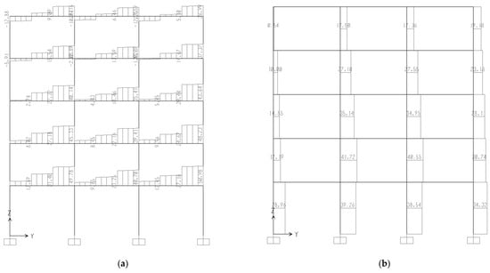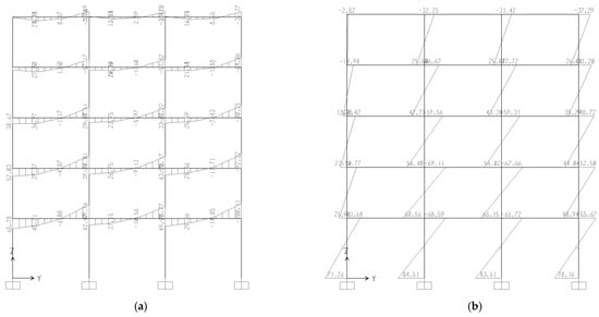 Figure 6. Force analysis is conducted on the structure, with bending moments and shear forces in a single frame in the Y-direction under Y-direction seismic action shown in