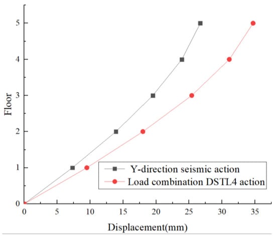 The inter-story displacements of the structure under Y-direction seismic action are shown in