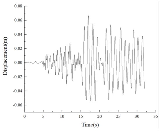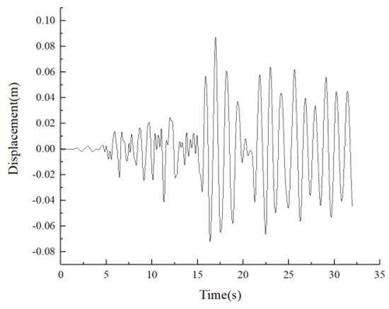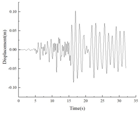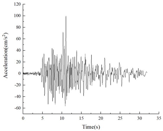 In the formula, and denote the time history curve and peak value of the seismic wave, respectively; represents the peak ground motion acceleration required by the seismic design intensity for frequent (minor), standard (moderate), or rare (major) earthquakes; and and signify the time history curve and peak value of the original earthquake wave, respectively.