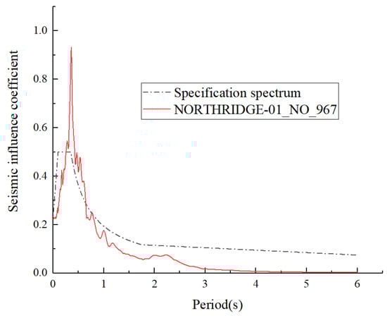 2 (equivalent to 0.1 g), and the recording increment is set at 0.02 s. Details regarding the raw data of the NORTHRIDGE-01_NO_967 seismic wave along with its acceleration response spectrum are illustrated in