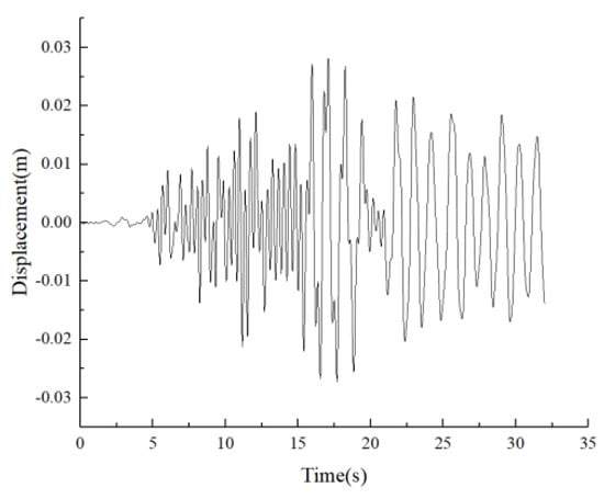 The time–history curves of the Y-direction displacement at nodes 98, 99, 100, 101, and 102 of each floor are shown in