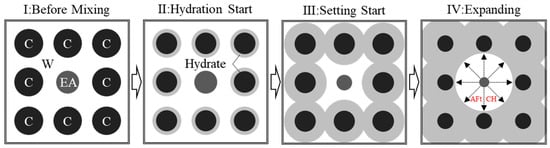 | Osmotic pressure hypothesis | By the disintegration of expansive substances during hydration or osmotic pressure, coexisting pores are generated, causing expansion. | [34,46,47] |