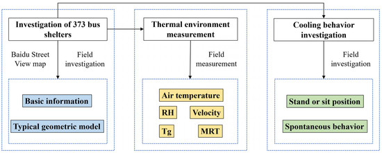 Workflow of investigation of bus shelters, their thermal environment, and cooling behaviors.