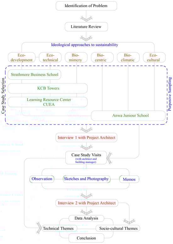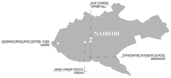 The study documented and analysed four case study buildings (Table 1) within Nairobi (Figure 1). The research focused on design professionals’ interpretation of the concept of sustainability. The case studies were selected through a purposive sampling approach, following initial interviews with research participants, to represent different facets of the ideological approaches to sustainability described in the literature review.