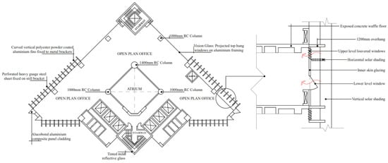 KCB’s typical floor plan showing solar shading and ventilation strategy. Source: Author 2023.