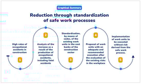 The statistics on work-related accidents published by the responsible organizations reveal that the average rate of work accidents within the construction sector is more than double that in other industrial sectors. This serious problem has been analyzed by numerous international organizations and institutes dedicated to occupational safety, health and welfare. Therefore, in this article, some results of a research project that aims to reduce workplace accidents through the standardization of safe work processes and procedures in construction sites are summarized. The proposed methodology consisted of the analysis of national and international bibliographies to analyze the different annual variations in the accident rate, allowing a common pattern to be located, as well as its association with the work processes carried out in construction projects to standardize each of the processes which are present in the execution and life phases of the building. It is possible to conclude that the accident rates can be reduced and/or eliminated with the application of each of the processes thanks to the obtained results.