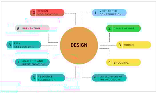 Once the content of this article is introduced, it can be determined that this study will have as its main goal a focus on risk evaluation linked to work procedures for each existing work unit, besides integrating preventive measures for, as mentioned previously, reaching a reduction in or suppression of work-related accident rates in the construction sector. For the reader’s understanding of the achievement of the general aim, the development of a work unit will be presented as an initial example to standardize processes and reach safe work standards, provided that selected criteria are determined.