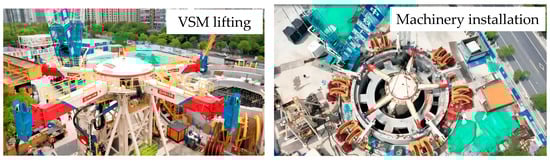 Previous research on vertical shafts has mainly favoured theory, numerical analysis, monitoring or experiments regarding the general method [,,,,,,,,]. However, there are currently few systematic presentations of new shaft technology based on actual projects []. Although there are a number of practical cases of shaft sinking using VSM, there is still a lack of research on the mechanical responses it induces and the effectiveness of the support structures, and even fewer studies on the detailed simulation based on this technique for large-diameter shaft sinking in soft ground. Similarly to conventional methods in terms of load-bearing, the VSM method determines its specific load-bearing characteristics and structural response as shown in Table 2.