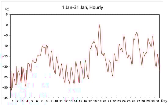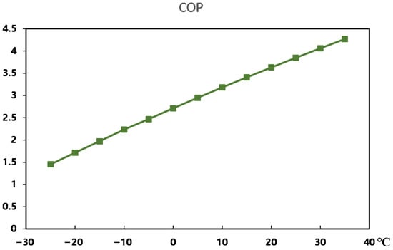 - In Mode 1, when the outdoor temperature is above −25 °C, meeting the minimum operating conditions for the air-source heat pump, heating can be performed. However, at lower temperatures, the heat pump’s heating efficiency is reduced. The heating system is jointly provided by the air-source heat pump and the electric heating water tank. When the outdoor temperature is below −25 °C the heat pump cannot operate, stopping its function, and only the electric heating water tank works.