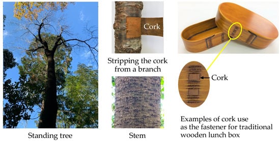 - Leite, C.; Pereira, H. Cork-containing barks—A review. Front. Mater. 2017, 19, 63. [Google Scholar] [CrossRef]