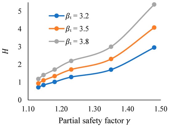 If the reliability index is too low, the structural safety cannot be guaranteed, while if the reliability index is too high, although the structural safety is increased, it is not economical. Therefore, it is necessary to make sure the designed reliability index is close to the target reliability. Due to the large number of cases (the number of cases corresponding to each material partial safety factor or resistance reduction factor), the least-square formula is used to calculate the deviation value H between the reliability index and the target one , and it can be written as