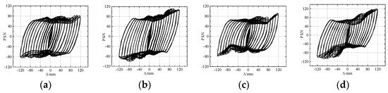 Hysteretic curves of tested specimens. (a) BCJ-BEDC1. (b) BCJ-BEDC2. (c) BCJ-BEDC3. (d) BCJ-BEDC4.