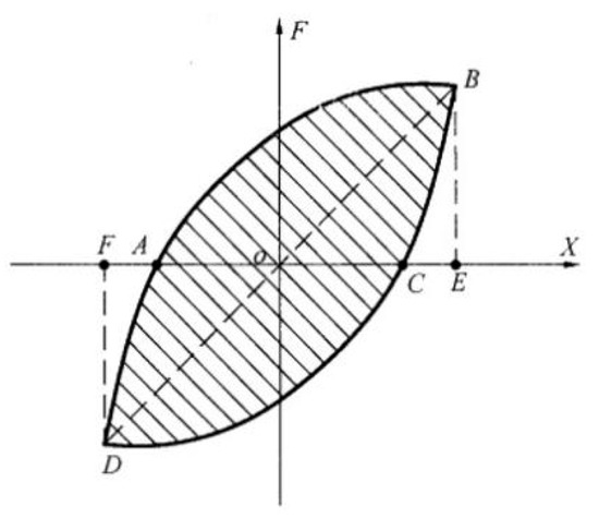 To evaluate the energy dissipation behavior, the equivalent damping ratio (ξeq) and the accumulative energy consumption (Ep) were adopted. The equivalent damping ratio (ξeq) is expressed by Equation (1), and the involved parameter could be calculated according to Figure 8, where SABCD is the area enclosed by the hysteresis loop, while SΔOBE and SΔODF are the area surrounded by triangles. The accumulative energy consumption (Ep) is the sum of the energy dissipation with the displacement increasing.