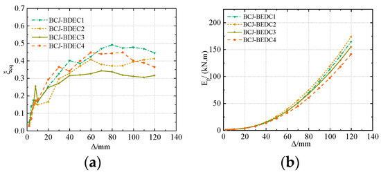 To further investigate the influence of different parameters on the mechanical behavior of the beam–column joint with the BEDC, a parametric study was conducted. The performance including the load–displacement curve, the accumulative energy dissipation, and the equivalent damping ratio is discussed.