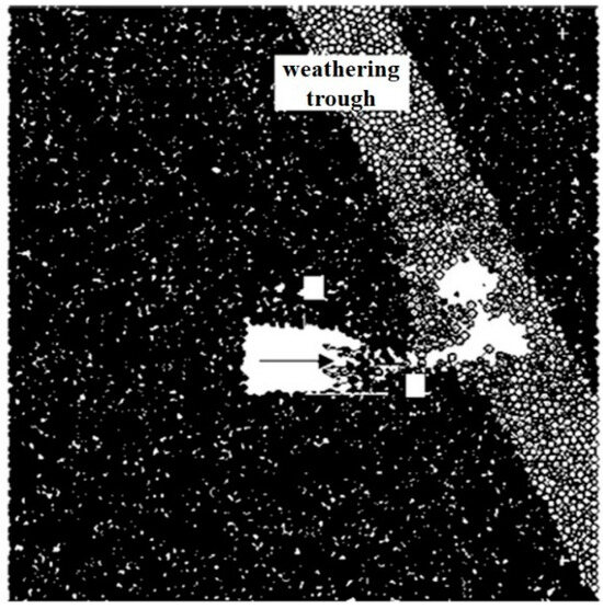 Based on our understanding of the water inrush characteristics of the weathering trough of the above-mentioned subsea tunnel, this section analyzes and discusses the formation process of the water inrush channel of the F1 weathering trough, the key parts of the water inrush and the influencing factors of the water inrush through the numerical simulation of the particle flow.