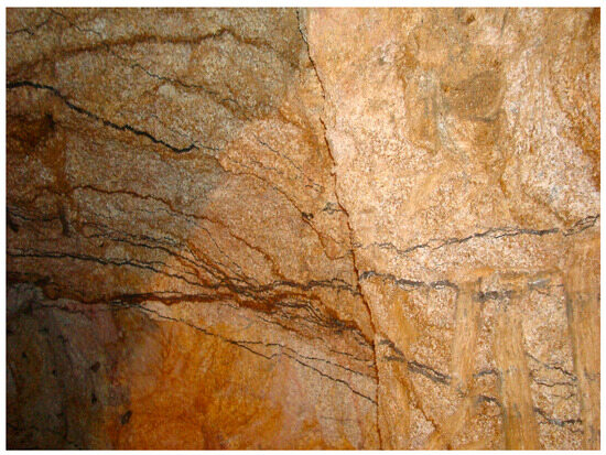 (1) First, the new grouting material, Malisan N, is used for the water shutoff design on the water-rich fissure weathered granite formation on the lower step; the grouting method adopts the penetration grouting reinforcement scheme, and the designed maximum grouting pressure is 2 MPa (Figure 8). The purpose is to resolidify the fractured rock mass, strengthen the surrounding rock and, at the same time, block and reduce the seepage water, quickly and effectively block the water gushing fissure, reduce the formation permeability coefficient and solve the permeability problem of the surrounding rock.