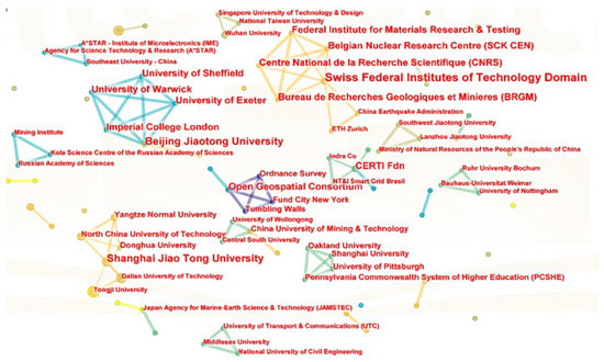 Co-occurrence map of sources and institutions of the digital twin smart subway tunnel-related literature (source: Web of Science, construction by CiteSpace).
