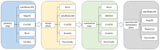 BIM technology can integrate all kinds of relevant information about construction projects, and it has become a trend to use it in the whole lifecycle management of subway station project planning, design, construction, and management. At present, the BIM software used in each stage of the subway station in China is mainly based on Autodesk series software. The application of Autodesk software in each stage of the subway station project is shown in Figure 11.