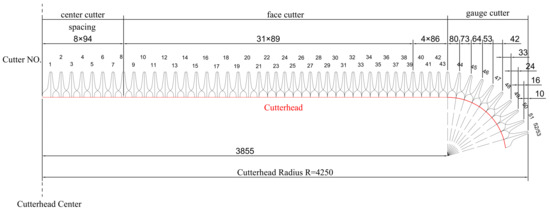 - Liu, J.P.; He, T.K.; Zhou, Z.J.; Peng, X.X.; Pan, Y.C. Analysis and Enlightenment on the Relationships between Two Kinds of Cutter Life Evaluation Indexes and Installation Radius: A Case Study. Buildings 2024, 14, 1523. [Google Scholar] [CrossRef]