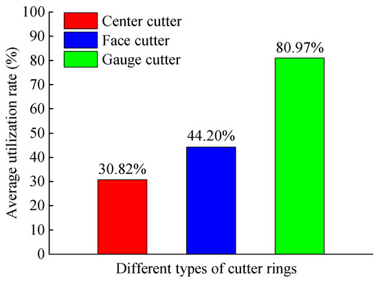- The average utilization rate of the gauge cutter was the highest (80.97%), followed by the face cutter (44.20%), and that of the center cutter was the lowest (only 30.82%).