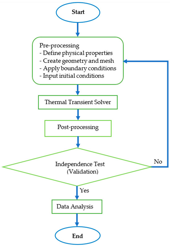 Figure 1 shows the simulation steps of thermal distribution in road pavements using Ansys 2023 R2. It should be recalled that the numerical simulations were based on the one-dimensional heat transfer theory. The boundary conditions and other input parameters of the valid models include, as follows: